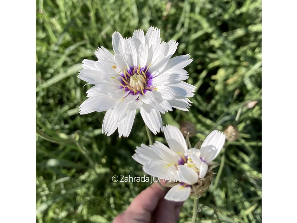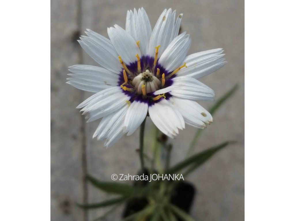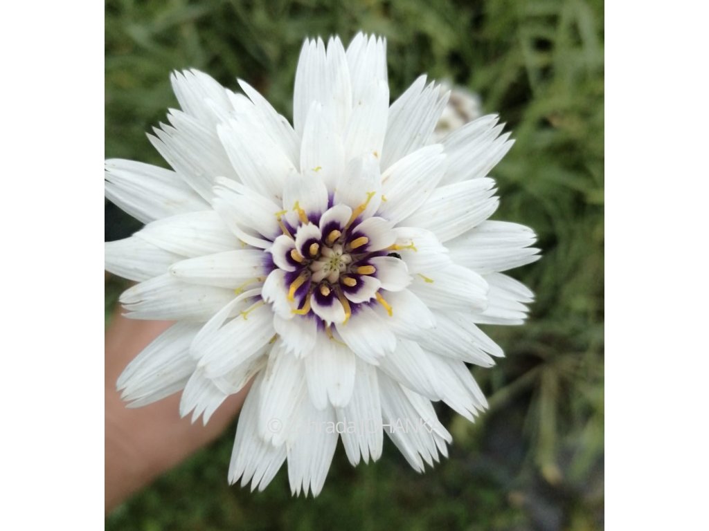 Catananche caerulea, česky poblekla modrá, druh 'Alba' je trsnatá trvalka, která na první pohled může vypadat jako chrpa, ale její bílé péřové květy vydrží déle a jsou vynikající na sušení a řezání. Poblekla modrá má úzké zelené listy a solitérní květy hlavic s bílými okvětními lístky, které jsou kolem středu zbarvené do fialova. Na konci jsou mírně pilovité. Ze středu vyrůstají oranžově-žluté tyčinky. Dorůstá do výšky 80 cm.Doplňkové parametry