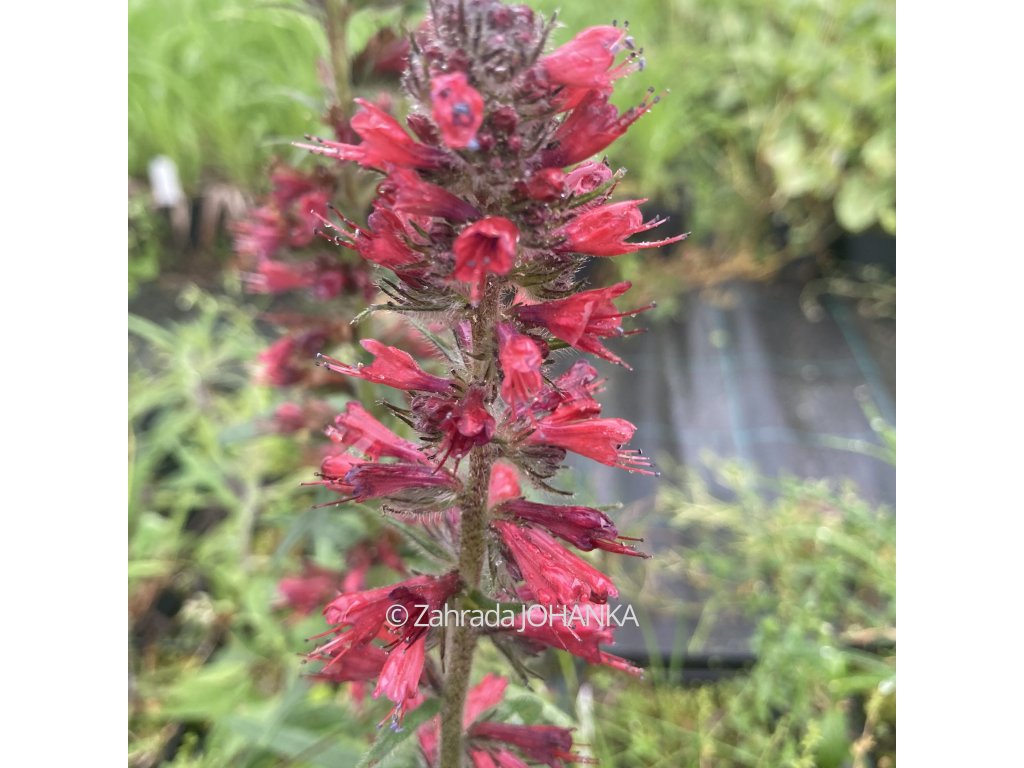 Hadinec - červené květy postupně se barvící do červenomodra, kvete V - VIII, 35 cm, zelené, úzké kopinaté listy, slunce, polostín, sucho, polosucho
