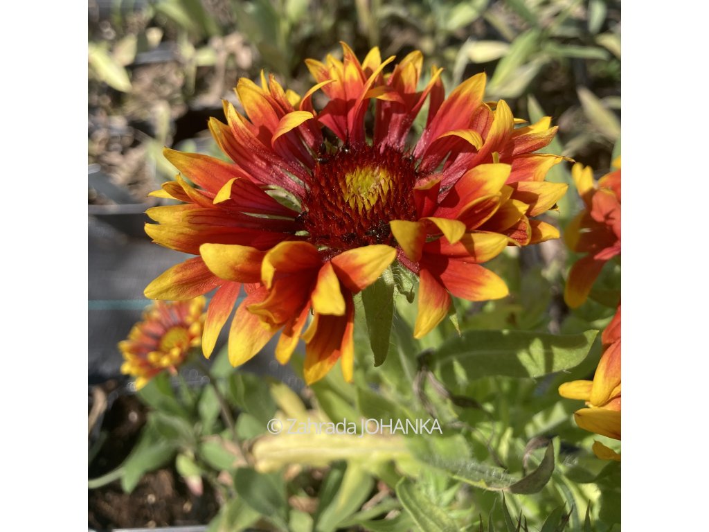 Druh kokardy s červeno žlutým květem se střapatějšími okvětními lístky. Preferuje slunné stanoviště a propustnější půdu. Kvete od léta do podzimu. Dorůstá 40 cm.Doplňkové parametry