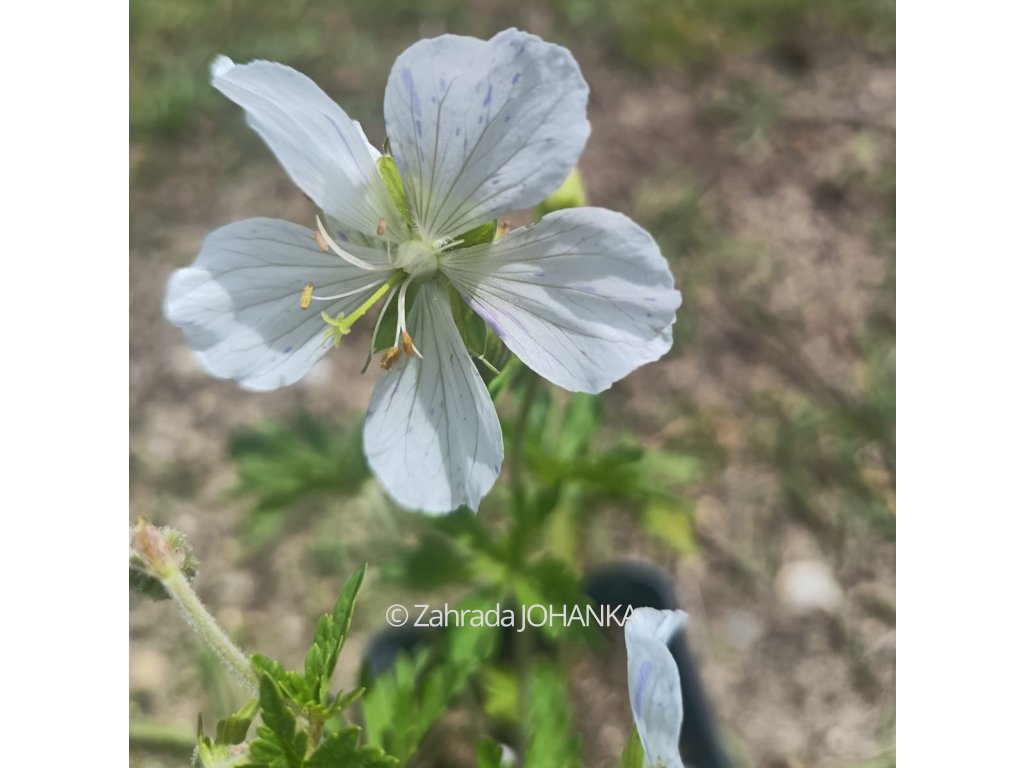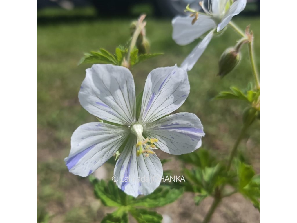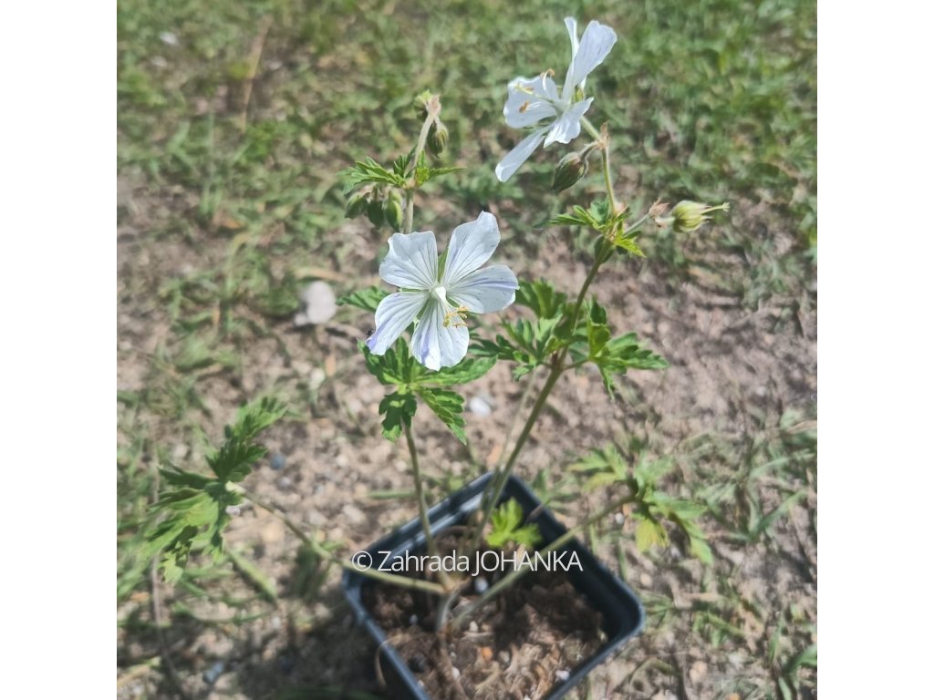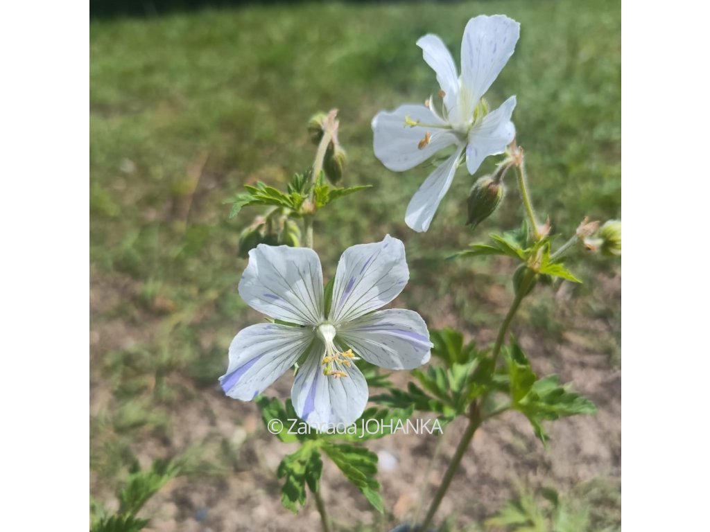 Kakost luční - bílé květy s modrým žíháním, kvete VI - VIII, 50 cm, slunce, polostín, polosucho