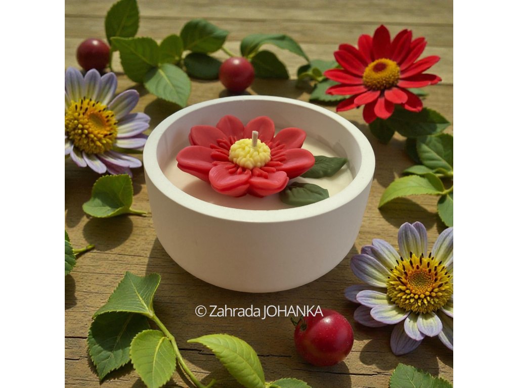 Nádobka je rovněž ručně vyrobena z inovativní směsi české výroby na bázi kararského mramoru. Po vytvrzení je sametově hladká, čistě bílé barvy, velice pevná a tepelně odolná do 500 °C. Doporučujeme ji po vypálení svíčky zachovat a vhodně použít. Naše nádobky se vyznačují především tím, že nevyžadují po vytvrzení žádné dodatečné ošetření chemickými látkami (akrylovými laky, apod.). Jsou tedy při vypalování vosku zcela zdravotně nezávadné. Směs neobsahuje pryskyřičná a sádrová pojiva, která mohou při vyšších teplotách praskat.