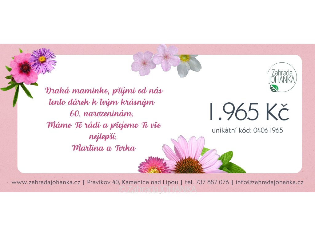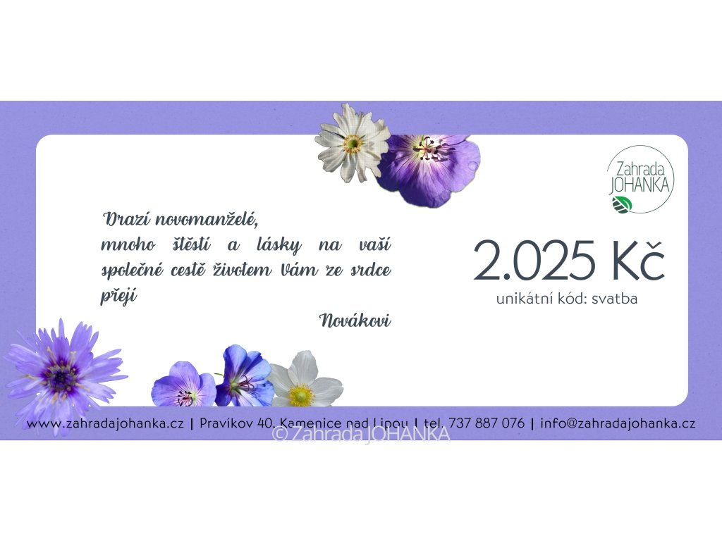 Náš jedinečný personalizovaný poukaz je vhodný jako svatební dar, dárek ke kolaudaci domu a založení nové zahrady (například kolaudační rok), poukaz k narozeninám (například rok narození), sv. Valentýn (rok nebo datum seznámení), apod.