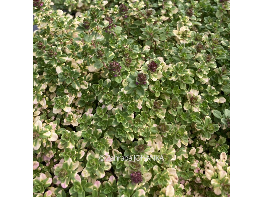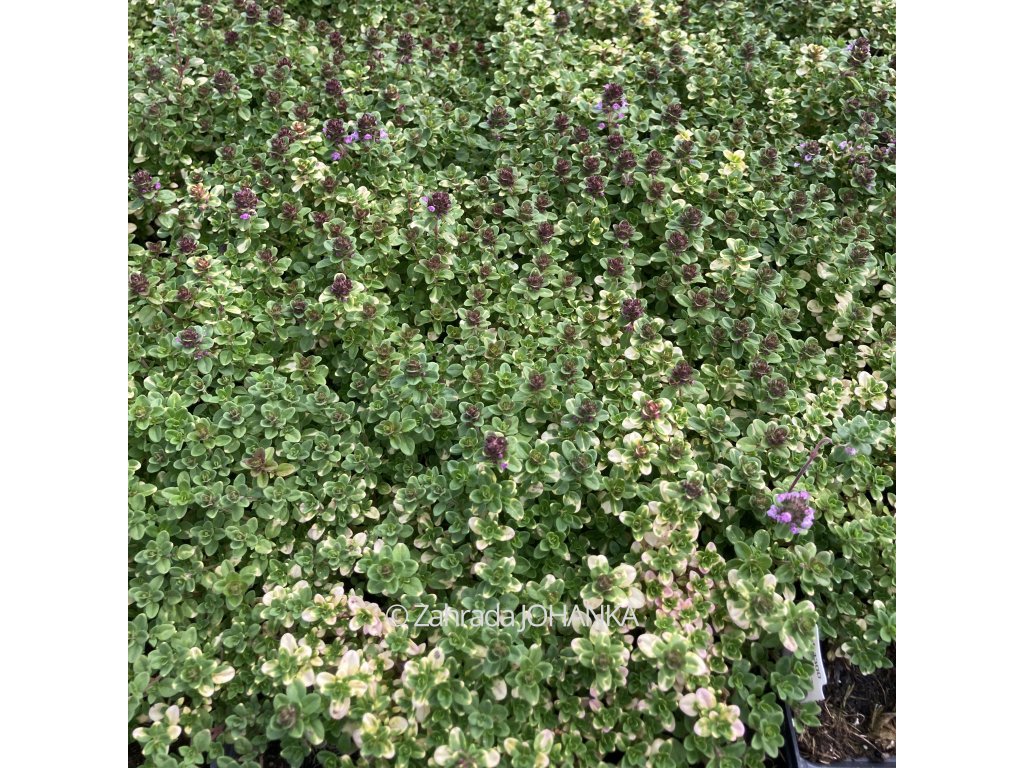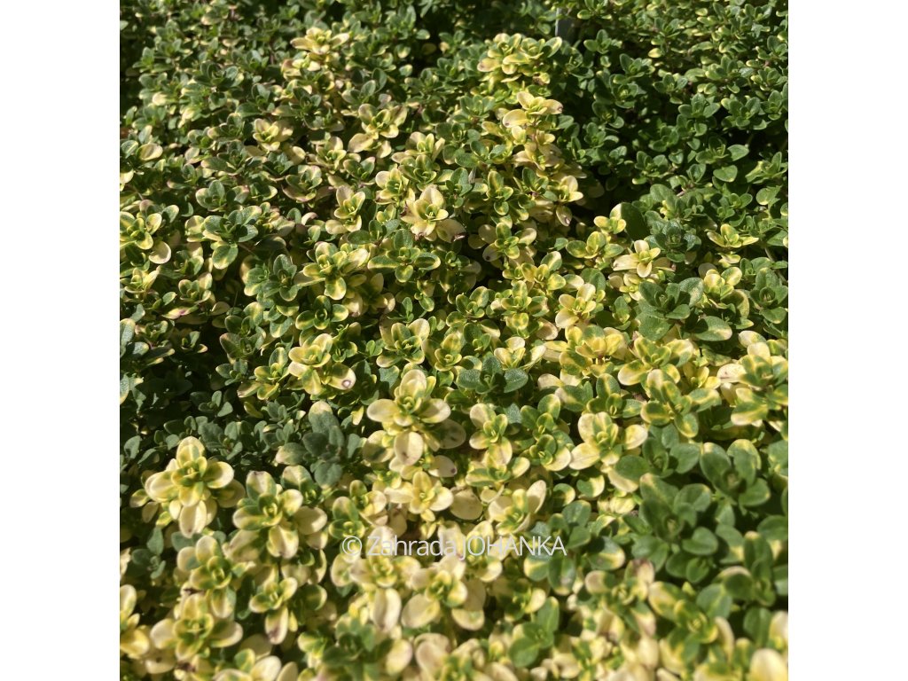 Půdopokryvná odrůda mateřídoušky, která na první pohled zaujme žlutozeleným panašovaným listem. Od června kvete růžovými květy. Kromě charakteristické vůně je dalším plusem této mateřídoušky i její zimní vzhled. Působením nízkých teplot se celá rostlina přebarví do starorůžových tónů.Doplňkové parametry