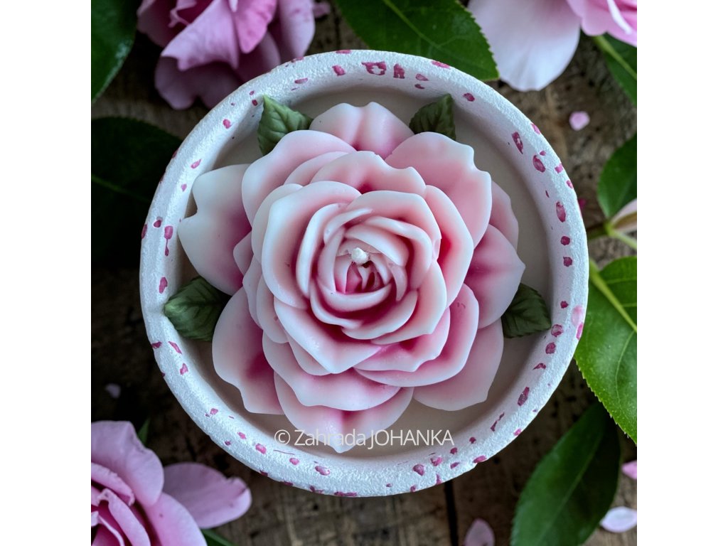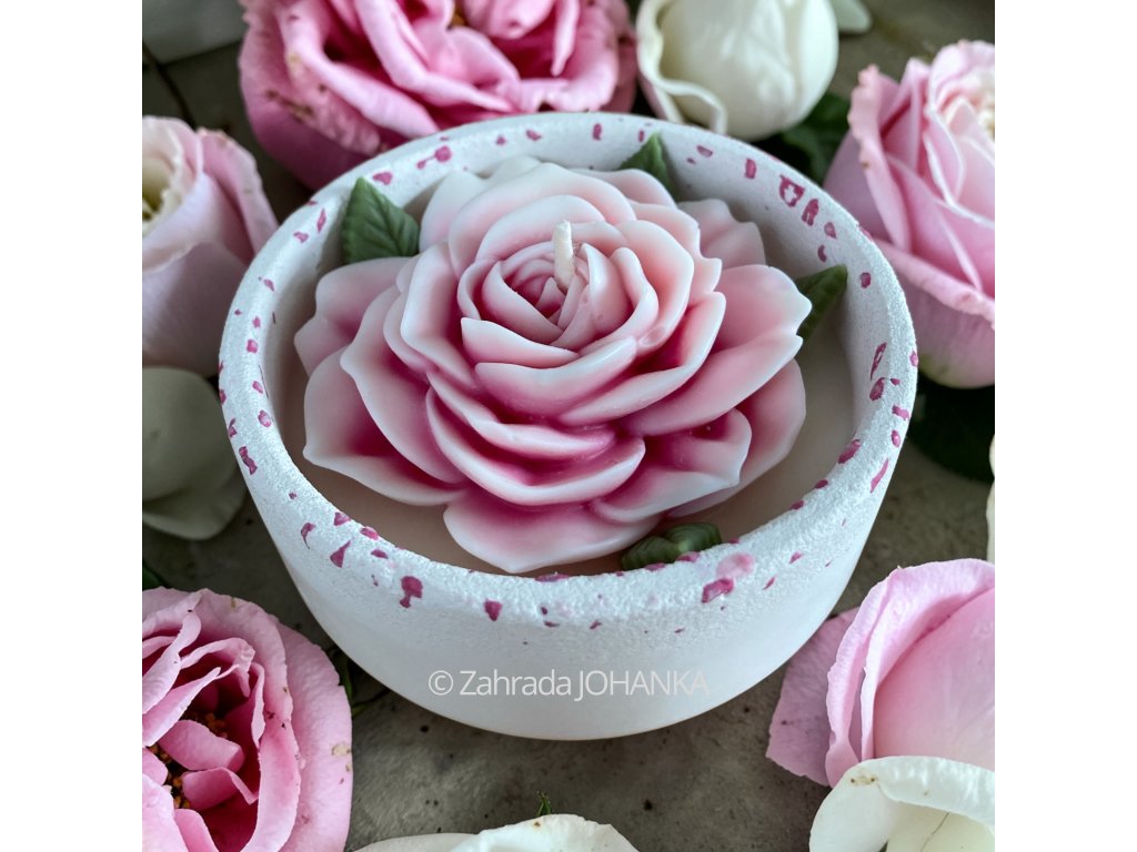 Nádobka je rovněž ručně vyrobena z inovativní směsi české výroby na bázi kararského mramoru. Po vytvrzení je sametově hladká, čistě bílé barvy, velice pevná a tepelně odolná do 500 °C. Doporučujeme ji po vypálení svíčky zachovat a vhodně použít. Naše nádobky se vyznačují především tím, že nevyžadují po vytvrzení uvnitř nádoby žádné dodatečné ošetření chemickými látkami (akrylovými laky, apod.). Jsou tedy při vypalování vosku zcela zdravotně nezávadné. Směs neobsahuje pryskyřičná a sádrová pojiva, která mohou při vyšších teplotách praskat.